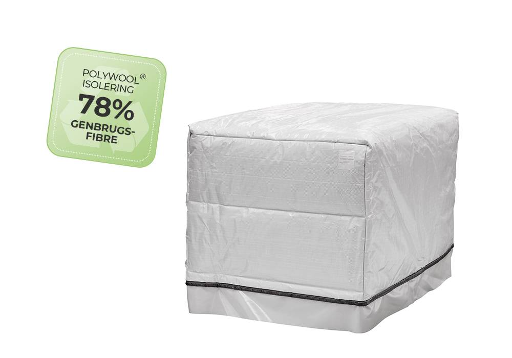Polywool® isolering bestående af 78% genbrugsfibre hjælper til øget bæredygtighed og samlet betyder mørtelhætternes effektive isoleringsevne, at de indfrier alle behov for en effektiv og holdbar termoløsning ved transport og opbevaring af byggematerialer.
